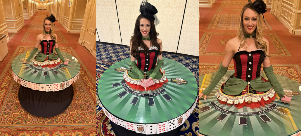 Make your next event unforgettable with the Strolling Black Jack Living Table — Mock Gaming Only, where the game comes to you!